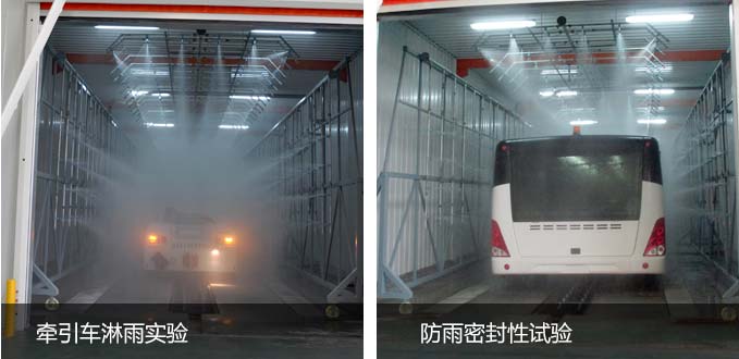 淋雨實驗室可滿足QC/T 476《客車防雨密封性限值及試驗方法》的標準要求,可模擬自然界的降雨過程,根據試驗要求實現不同的降雨效果。適用于大型車輛和特種裝備,也可進行零部件密封性試驗。