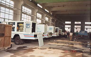 威海特種電源設(shè)備廠成立,并從電冰柜廠分離出來(lái),以獨(dú)立法人資格對(duì)外自主經(jīng)營(yíng),自負(fù)盈虧,租借廠房500平方米,圖為創(chuàng)業(yè)初期的28名員工。