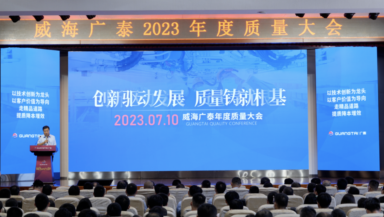 2023年7月10日,是威海廣泰第18個質量日。早上8:00,威海廣泰研發大樓前,公司副總經理羅豐帶領全員升國旗,頌讀司訓,并共同宣誓“質量誓詞”。同樣,鏗鏘有力的誓詞,在威海廣泰各分子公司、各廠區紛紛響起,威海廣泰全體員工共同作出對產品和工作質量的堅定承諾。上午9:00,在廣…