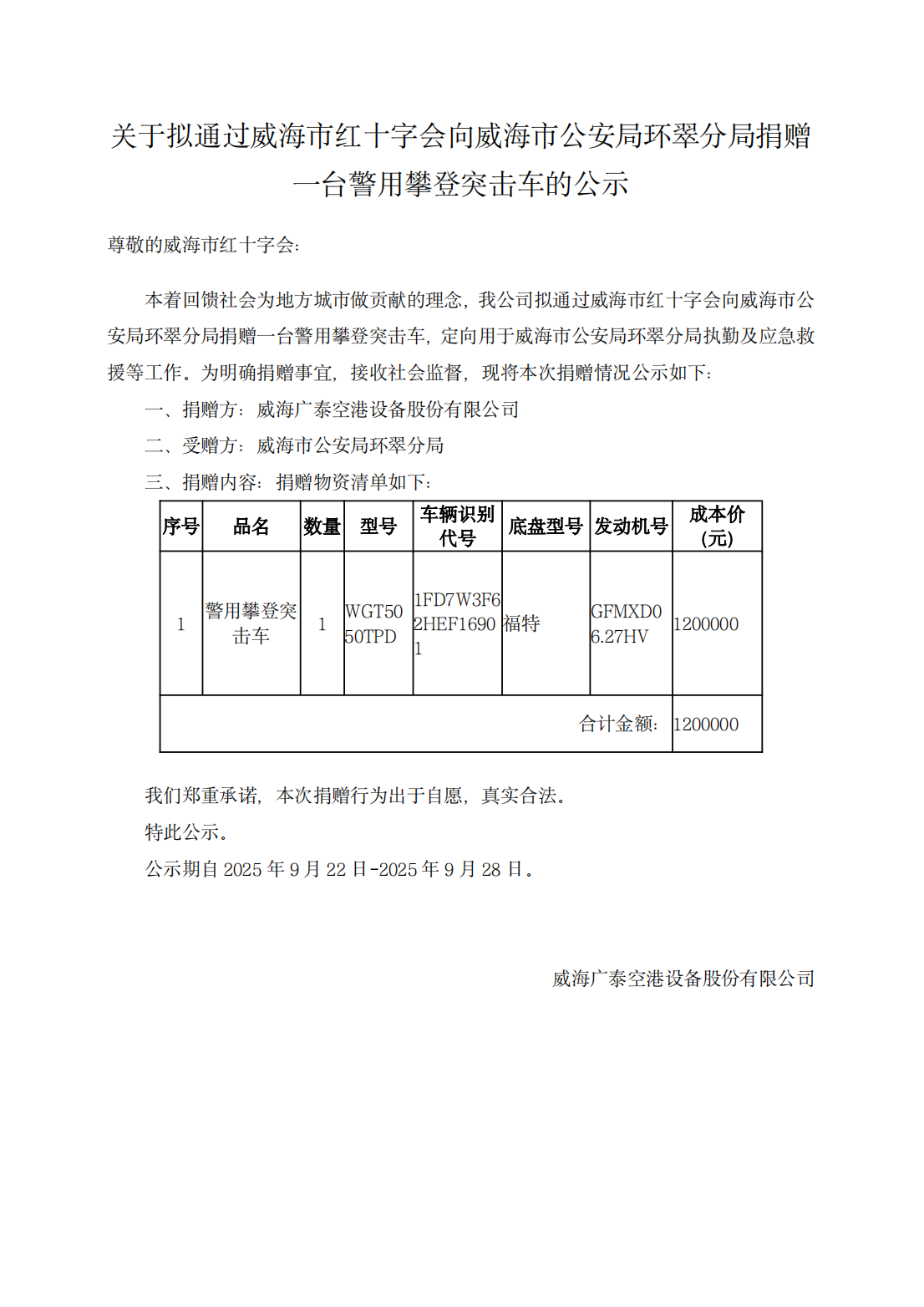 威海廣泰創建于1991年,并于2007年1月在深圳證券交易所上市。是一家集空港地面設備、消防裝備、消防報警裝備、 特種車輛、無人飛行器等業務于一體的多元化上市集團。