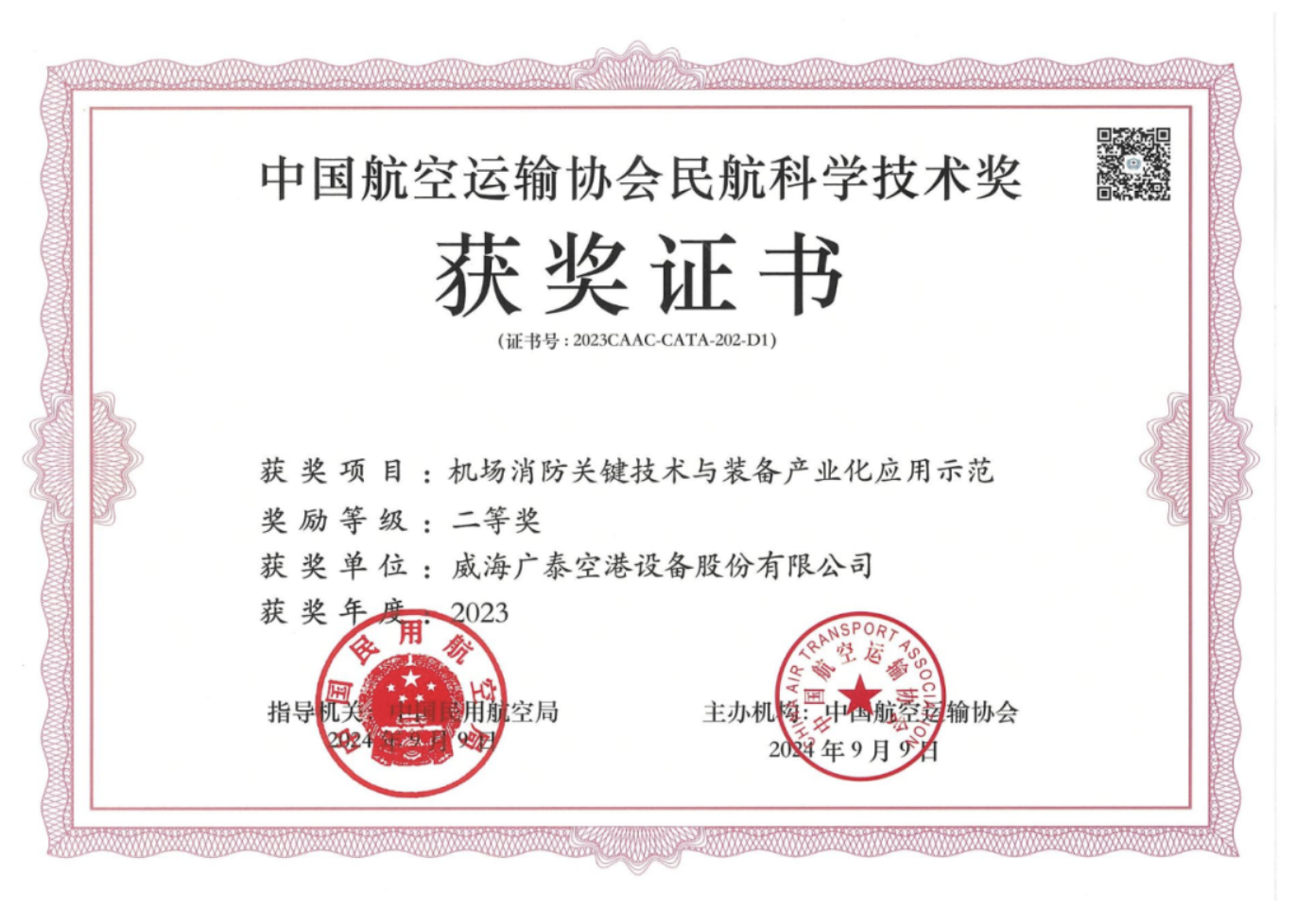 2024年10月25日,民航局第二屆CATA大會在北京召開,會議期間舉行了2022年度和2023年度中國航空運輸協(xié)會民航科學(xué)技術(shù)獎頒獎。威海廣泰“機場消防關(guān)鍵技術(shù)與裝備產(chǎn)業(yè)化應(yīng)用示范”和“智能萬向傳輸航空貨運裝載設(shè)備關(guān)鍵技術(shù)開發(fā)與應(yīng)用”項目分別榮獲“2023年度中國航空運輸協(xié)會民航科學(xué)…