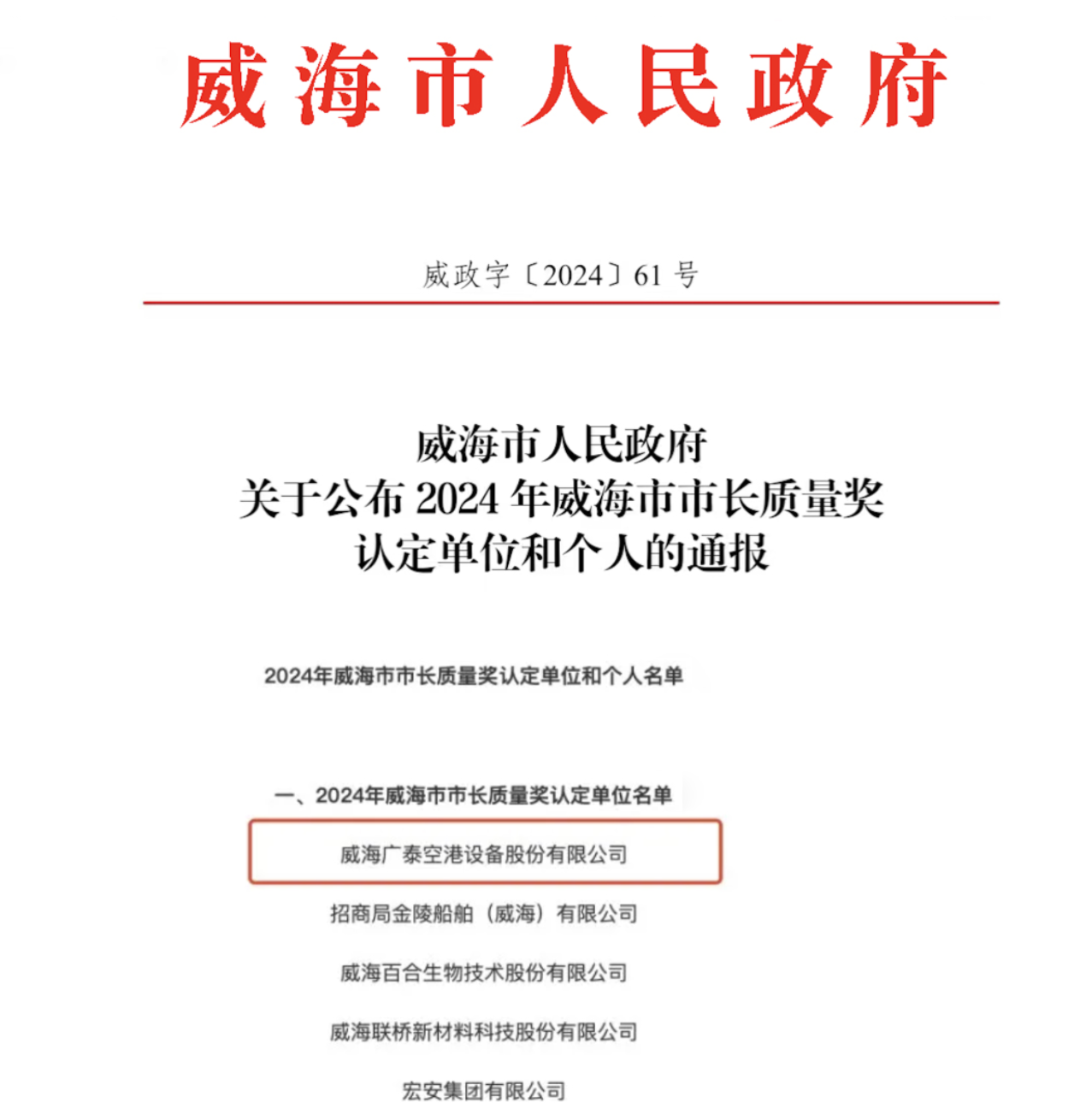 近期,由威海市質(zhì)量強(qiáng)市及品牌戰(zhàn)略推進(jìn)工作領(lǐng)導(dǎo)小組辦公室印發(fā)通知,組織開展了2024年度威海市市長質(zhì)量獎(jiǎng)?wù)J定工作。經(jīng)過激烈的角逐,威海廣泰空港設(shè)備股份有限公司(以下簡稱“威海廣泰”)在眾多競爭者中脫穎而出,成功榮獲2024年度威海市市長質(zhì)量獎(jiǎng)。此項(xiàng)殊榮不僅是對威海廣泰產(chǎn)品…