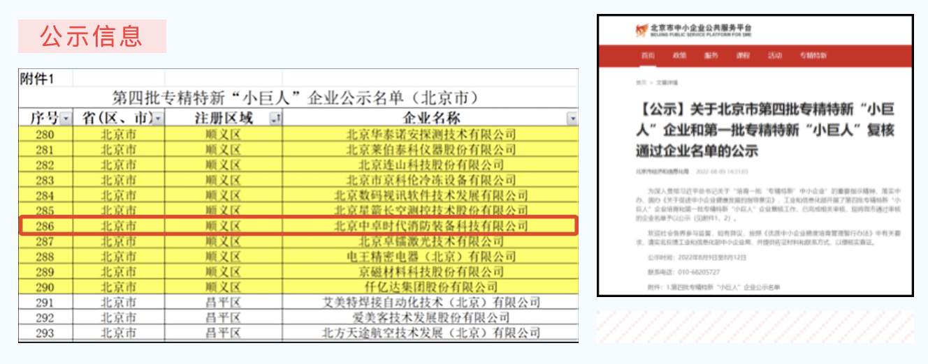 近期,北京市中小企業(yè)公共服務(wù)平臺(tái)公示“關(guān)于北京市第四批專精特新‘小巨人’企業(yè)名單”,北京中卓時(shí)代消防裝備科技有限公司(以下簡(jiǎn)稱:中卓時(shí)代)成功入選第四批國(guó)家級(jí)專精特新“小巨人”企業(yè)。 專精特新中小企業(yè)具有專業(yè)化、精細(xì)化、特色化、新穎化等四大特征。專精特新“小巨人…