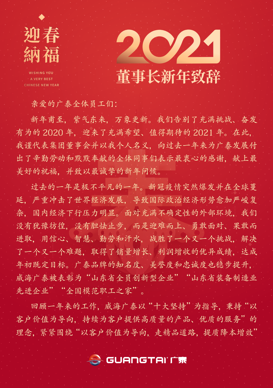 “感動”與“最美”觸動心靈;“目標”和“囑托”催人奮進?;厥?020,新冠疫情突然爆發并在全球蔓延,廣泰集團科學防控疫情,嚴密組織復工復產,以“十大堅持”為綱,以技術創新為龍頭,以客戶價值為導向,走精品道路,提質降本增效,打造智能化高端保障裝備制造平臺,實現集團高質…