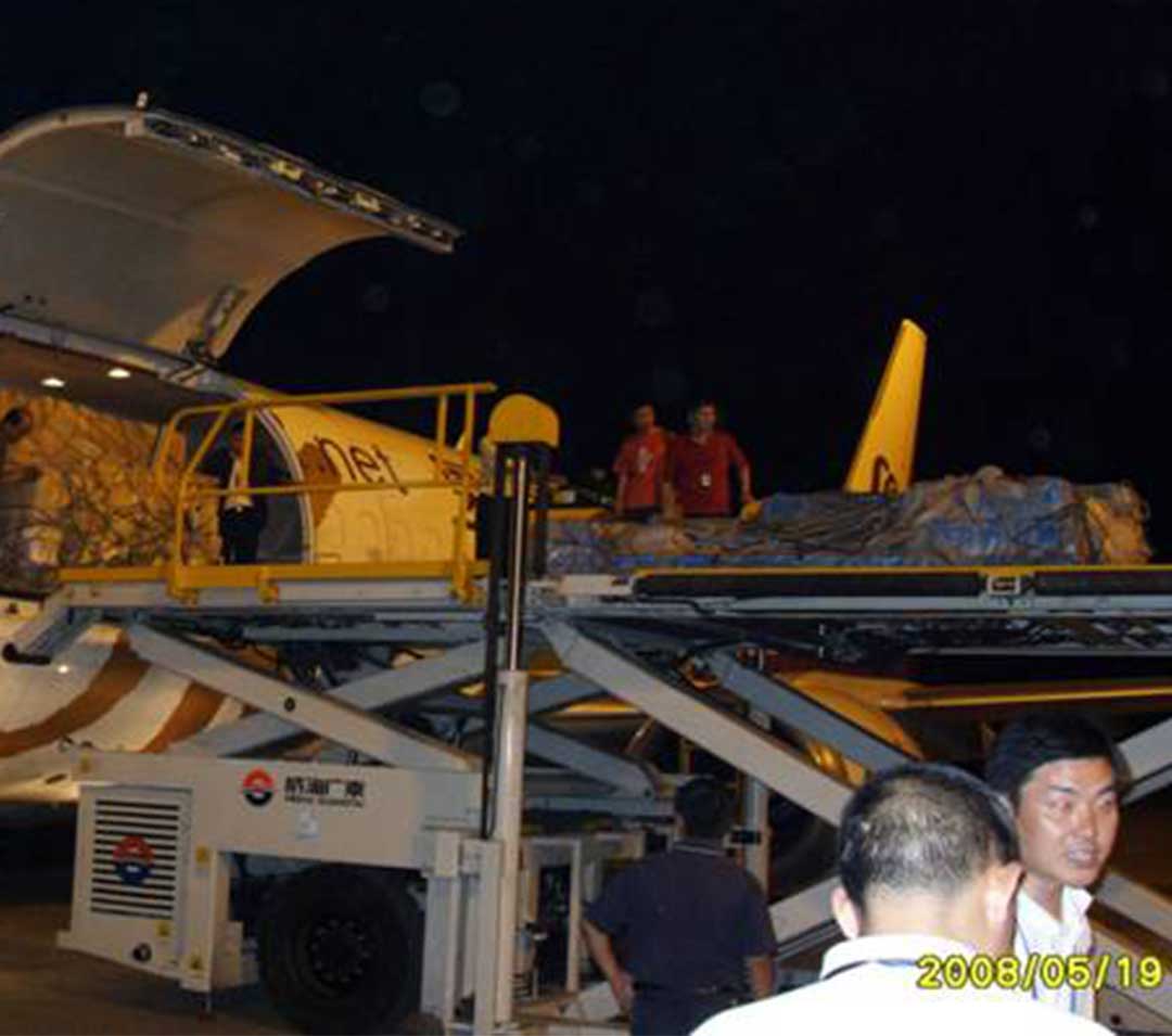 2008年5月16日,汶川地震后公司平臺車在綿陽機場作業